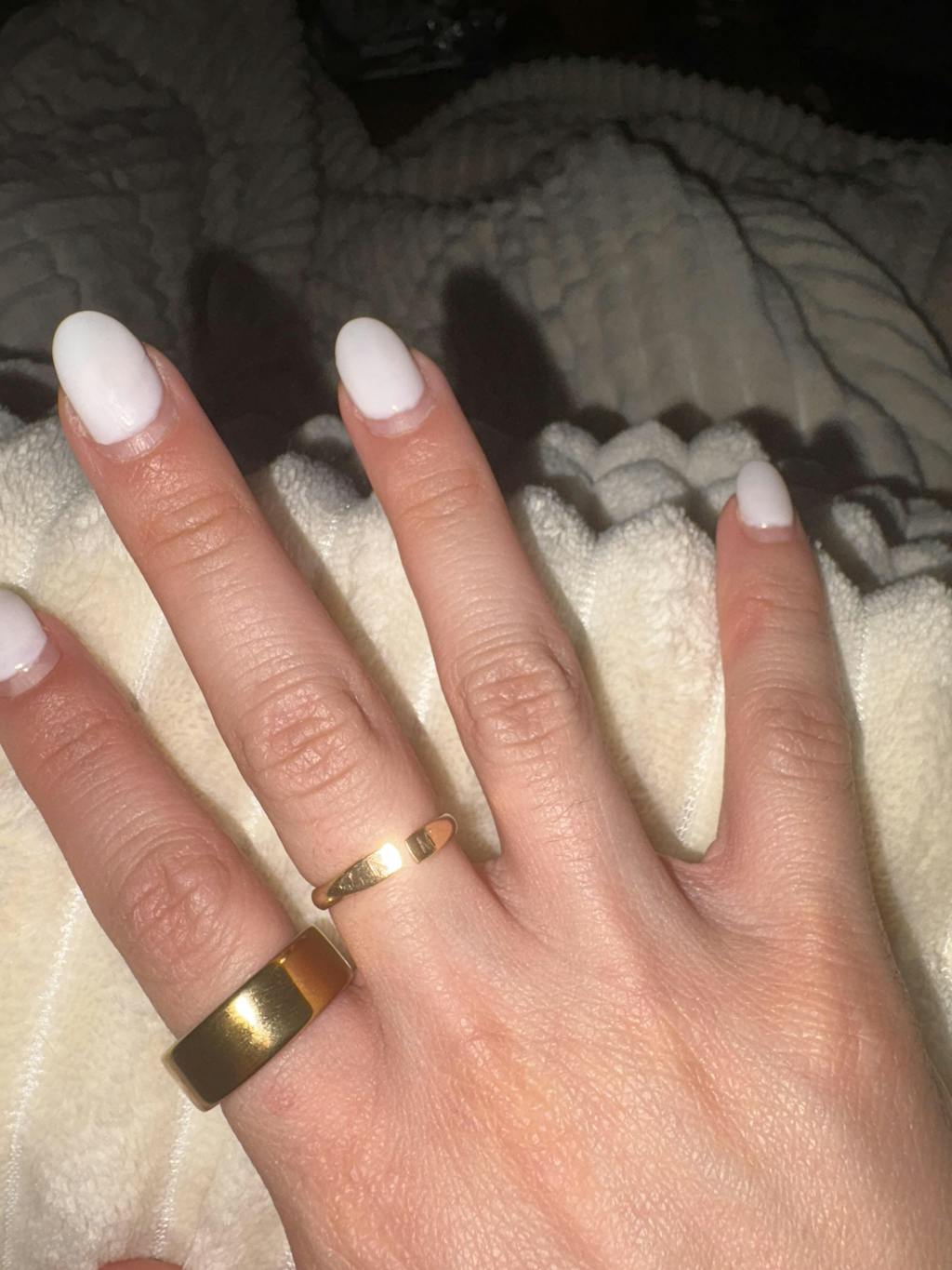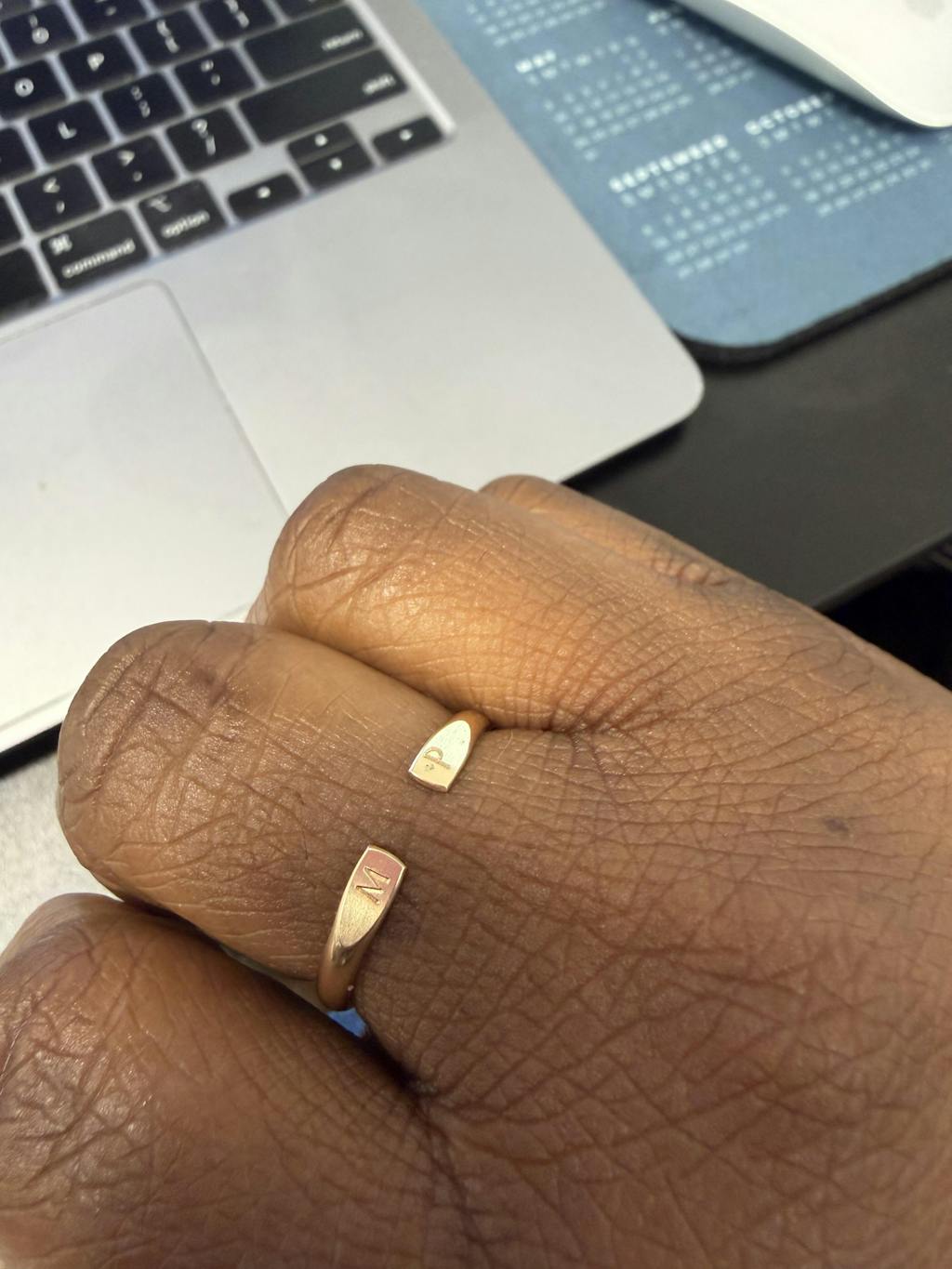 I was super excited about this ring. Unfortunately, the rings appear way bigger/thicker and bright online than what they are in person… my ring is so thin and the letters are so small that I have to squint to see them… While it’s always nice to have a personalized item, the way it was presented online is not how it is in person.., very underwhelming unfortunately.